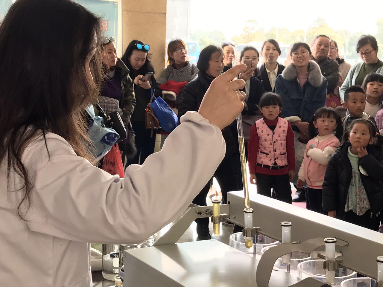實地參觀結束之后,孩子們再次回到綜合樓。供水公司的工作人員就水質的幾項重要指標——渾濁度、余氯、肉眼可見物等向孩子們做了細心的講解,并邀請孩子們親子動手進行了不同水樣的渾濁度及余氯測試。