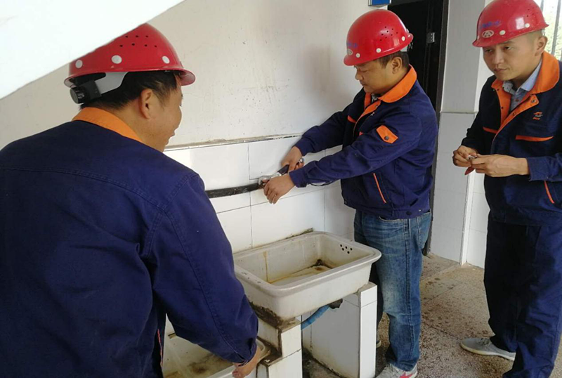 上午九時(shí),志愿者們首先來(lái)到學(xué)校的水房,這是他們此行的主要服務(wù)項(xiàng)目。水池已經(jīng)年久失修,水管生銹,龍頭松動(dòng),總是有水流出,既浪費(fèi)了水資源,還使整個(gè)水池周圍的地面濕滑,造成了一定的安全隱患。看到這種情況,志愿服務(wù)隊(duì)的工作人員二話不說(shuō),拿起了拖布就開(kāi)始拖地,把整個(gè)水房的地面清理的一塵不染。服務(wù)隊(duì)員不怕臟不怕累,徒手對(duì)老化的水管進(jìn)行了維修,換掉了老舊的水龍頭,還用膠布把接頭部分進(jìn)行纏繞,以免日久再有漏水的現(xiàn)象。大家相互配合,做事有條不紊,盡心盡力地把服務(wù)工作做好,像給自家做事一樣認(rèn)真負(fù)責(zé)。