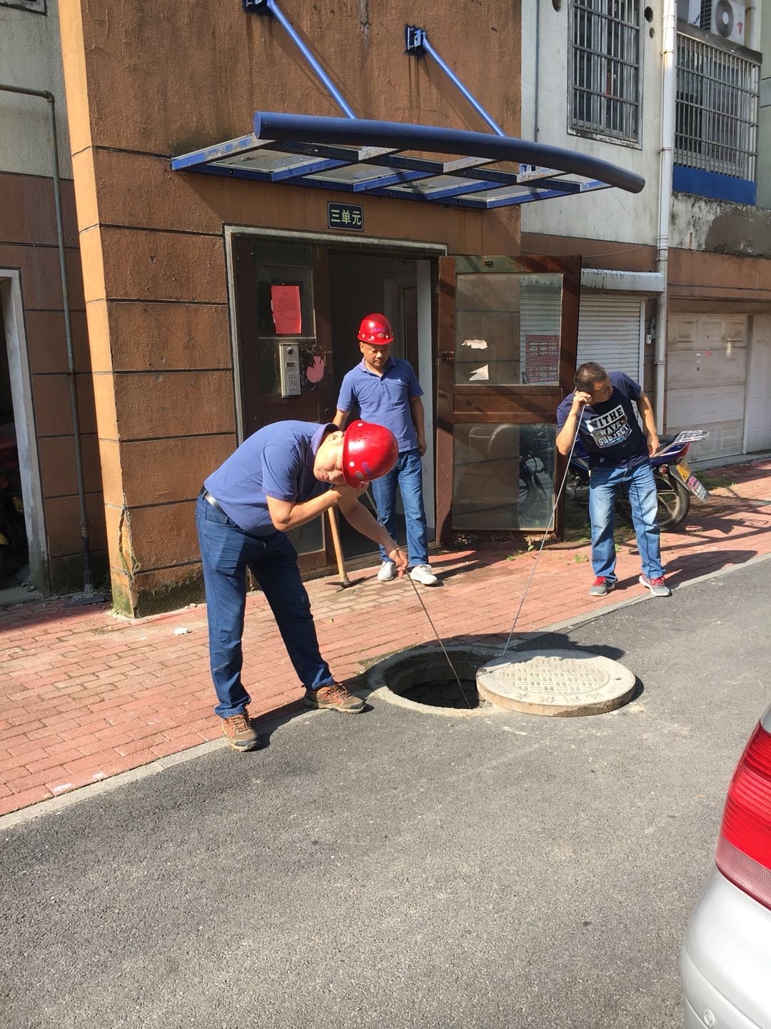 高溫天氣里,管網探漏隊的工作人員冒著炎炎烈日,經常徒步穿梭在大街小巷里探漏;由于城市共水管道敷設的范圍大、距離長,探漏人員往往一天要搬動10多個重達10公斤的井蓋,通過觀察下水道中流水情況來判斷附近有無出現漏水。正常來說,下水道中的水應該比較渾濁;如果碰到下水道中的水比較清澈的話,就要看看附近是否出現漏水。探漏首先要聽懂“水語”,沒有一年半載很難入門,用聽音桿貼緊自來水管閥門或路旁消防栓等暴露點,是聽診地下自來水管網“健康”狀況的主要方式。其實聽漏的原理與醫生聽診的原理一樣,通過鐵棒聽診,從水管中水流的異常與否判斷是否漏水。實際上,聽診地下供水管網,最難的不是聽漏,而是準確定位漏點。水管都深埋在地下,有的深達2米多,通過聽音桿傳上來的流水聲音很微弱,難以定位。而水管周邊還埋有電纜、燃氣、通訊等各類管線,不能隨意大面積地挖掘。在不能大面積挖掘的前提下,要想在如此復雜的地下世界中在一米范圍內確定漏點,無異于一場縝密的偵查工作。