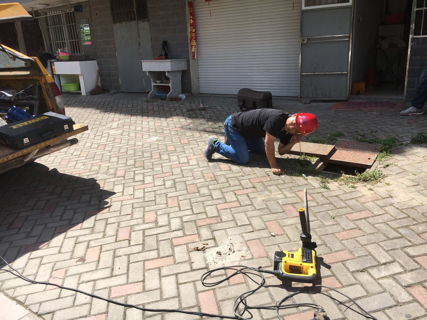 供水探漏人炎炎烈日下忙探漏保居民安全用水