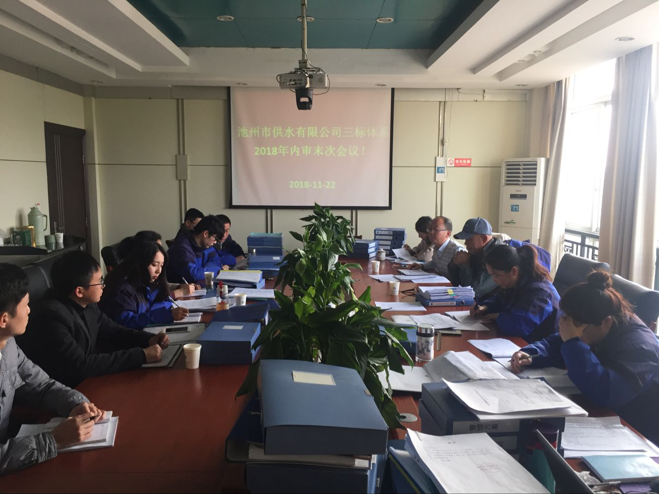 為對(duì)公司2018年質(zhì)量、環(huán)境、職業(yè)健康安全管理體系運(yùn)行情況進(jìn)行有效檢查,驗(yàn)證三標(biāo)管理體系的符合性及有效性,2018年11月21日至22日,池州供水有限公司開(kāi)展了三標(biāo)管理體系2018年度內(nèi)部審核工作。體系小組及各部門內(nèi)審員共計(jì)17名參與了內(nèi)審。