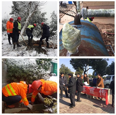 2017年1月21日開始,池州市迎來了低溫暴雪天氣,持續的低溫暴雪導致地表立管、水箱及水表等結冰、破裂,嚴重影響供水安全。公司迅速啟動供水防冰凍應急預案,搶險隊伍24小時待命,隨時應對管道冰破、爆裂等事件,為能做好水表設施快速搶修維修工作,水寶寶應急供水服務隊還組成八個水表設施維修小組。