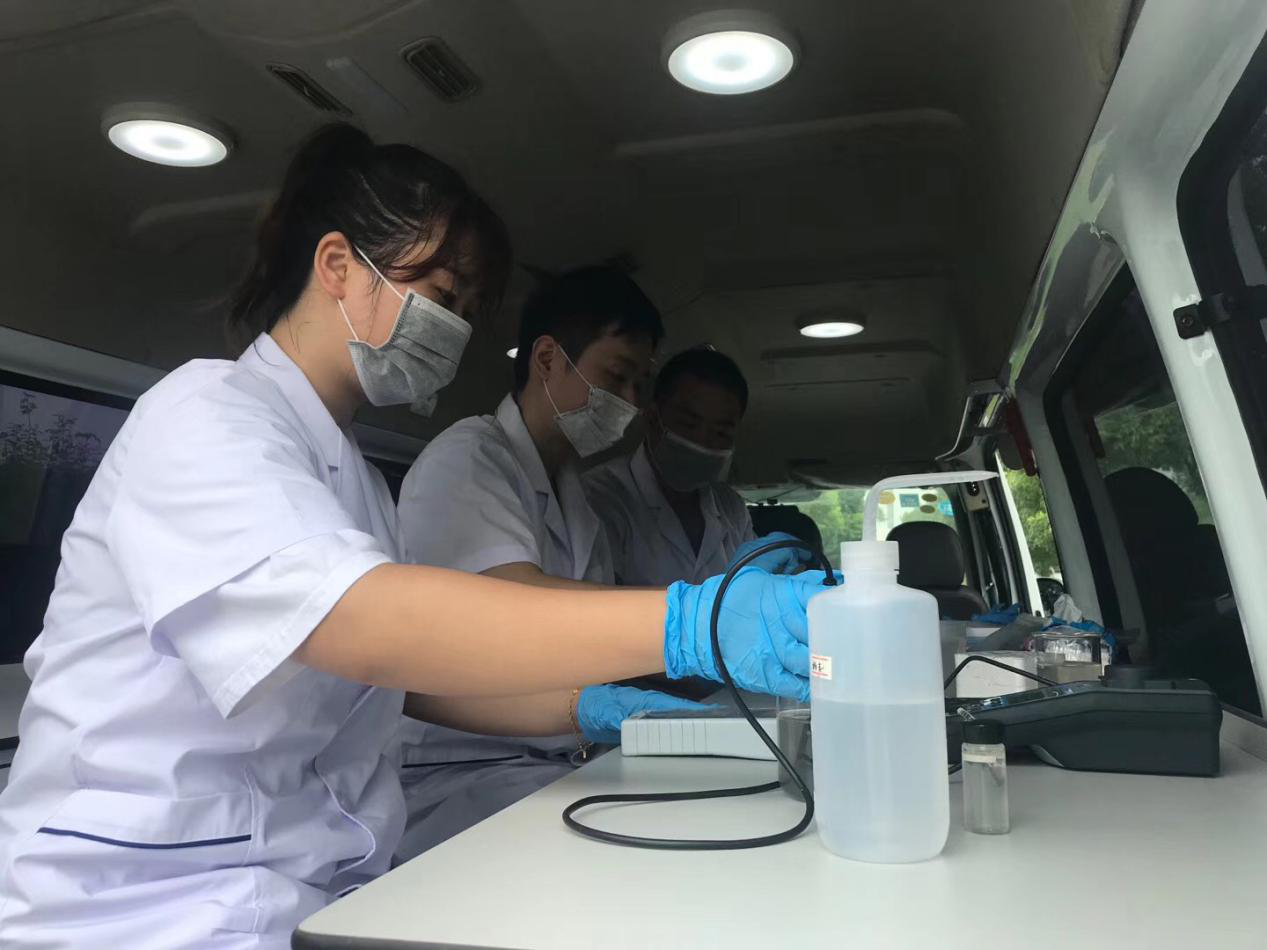 演練假定情景為原水pH值持續異常升高,有被污染的風險 演練現場,隨著應急監測組長宣布啟動預案響應,應急監測小組根據演練方案,分為四組:第一組為應急監測采樣小組,主要任務為執行應急監測技術方案,提供事故現場各環境要素的監測結果及現場取樣、送樣工作;第二組為應急監測分析小組,負責應急監測樣品的分析工作;第三組為管網水質巡測小組,負責對城區管網點進行巡視,確保城區用水安全。如有異常,應立刻反饋給應急監測組長,并送水樣至水質檢測中心進行進一步的檢測;第四組為后勤保障組,負責對監測數據進行匯總,編制校核監測快報,對水體污染變化狀況做預測預報。