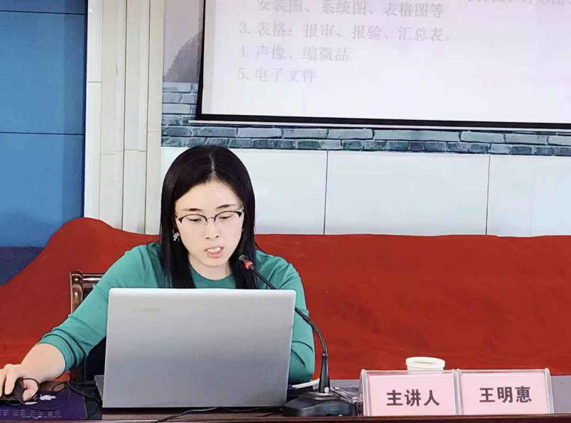 本次培訓以建設項目檔案為主題,重點宣貫了《建設項目檔案管理規范》。主講人王明惠老師向我們介紹了建設項目檔案的概述、檔案分類、檔案管理內容、要求以及如何規范立卷,并展示了優秀案例,使我們對如何規范建立檔案有了更加深刻的認識。一個項目檔案的建立,主要包括立項、勘察、可研報告、施工圖設計,施工質量安全記錄和竣工驗收材料等。