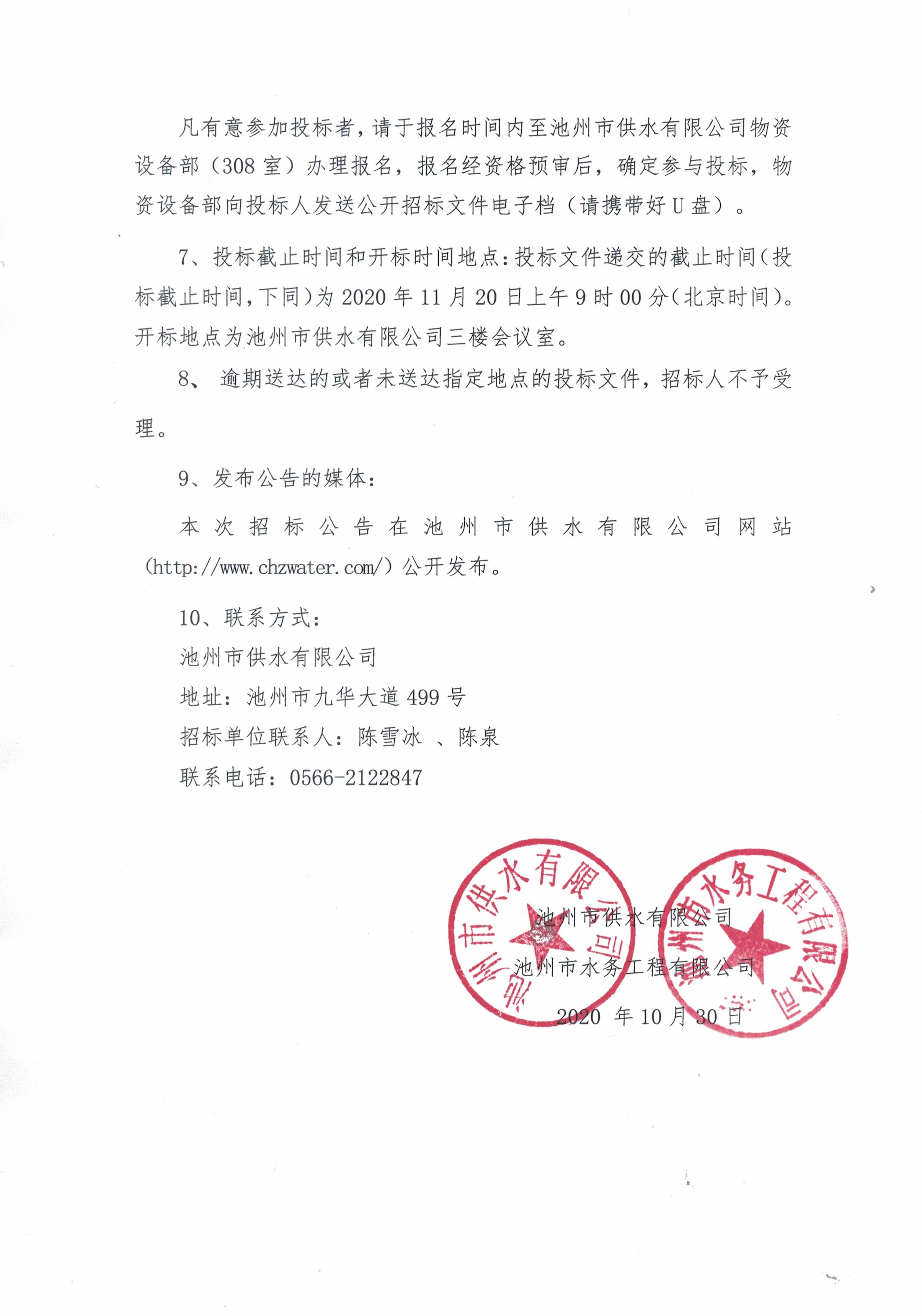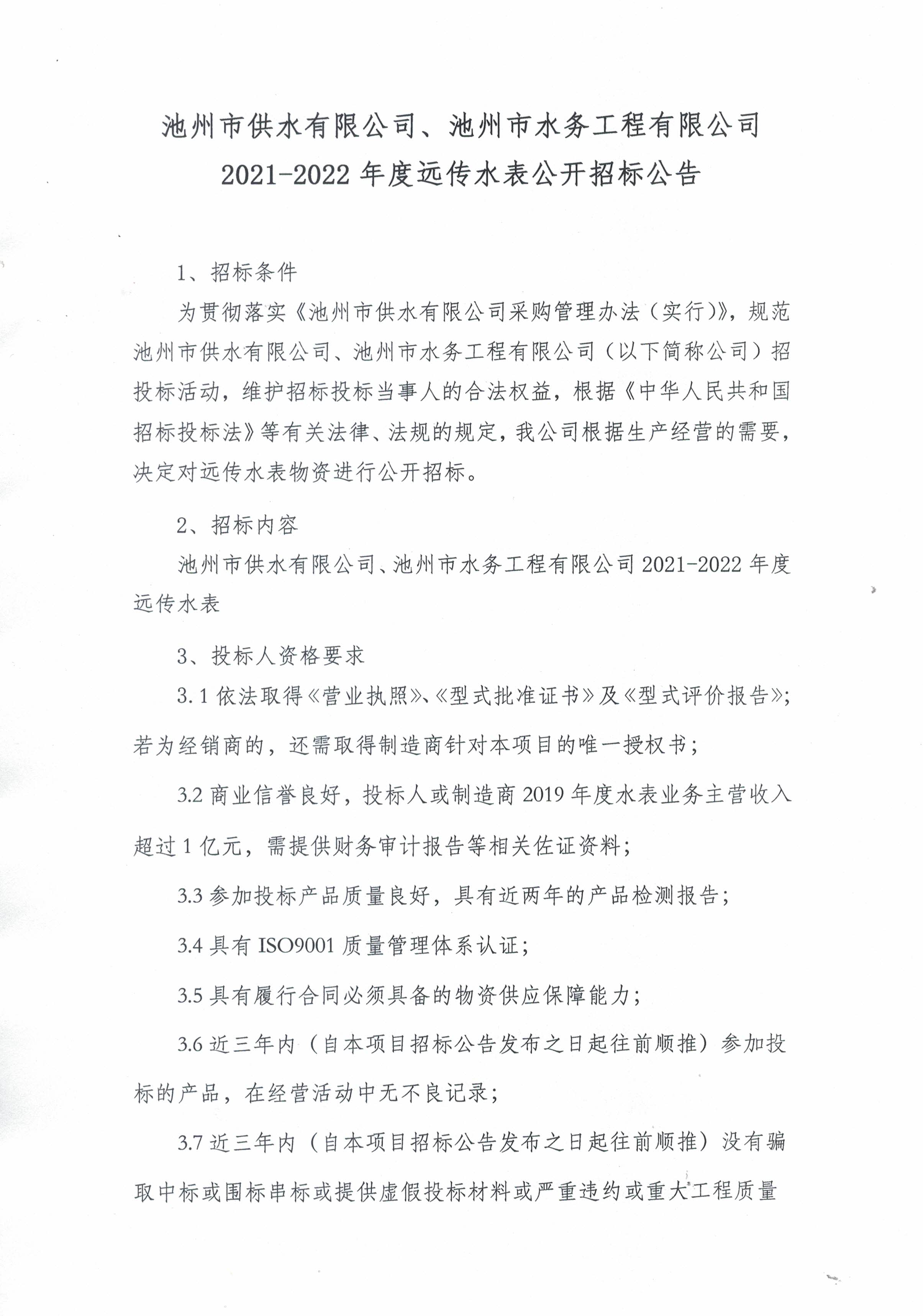 | 池州市供水有限公司、池州市水務工程有限公司2021-2022年度遠傳水表公開招標公告 | |