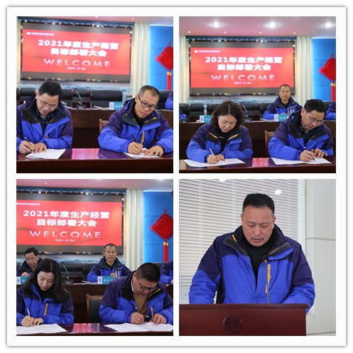 本次會議是一次分任務、領任務、領責任的大會。會議全面部署了2021年的各項生產經營指標,董事長、總經理、各分管領導與部門分別、逐一簽署了安全生產責任書、經營業績目標責任書、黨建工作目標管理責任書、黨風廉政目標責任書等。各分管領導對分管部門進行了工作部署和要求,江口水廠、客戶服務部做為部門代表,向大會作表態性發言。
