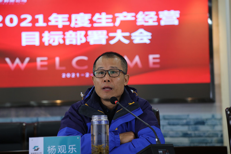 董事長楊觀樂作總結講話,他首先感謝了春節期間一直堅守崗位的工作人員,感謝他們恪盡職守、舍小家為大家,保障了全市供水安全。他高度肯定和認同總經理和各分管領導的工作部署,他指出,新征程要開啟新規劃,領導干部要做好把方向、管大局,保落實的服務工作。他要求,一要系統謀劃,統籌兼顧,面對紛繁復雜的工作做到多而不亂,繁而不雜,協同作戰;二要不搞形式主義,精準實施,走深走實,高標準嚴要求;三說得好不如做得好,我們要找差距、補短板,強弱項,規定動作不走樣,特色工作有特點,擯棄“一般化、差不多、過得去”思想;他強調,我們要把責任扛在肩上,要有“繡花”功夫,守住安全生產底線、紅線;要踏石留印、抓鐵有痕,重點工作不失分,難點工作不丟分,精彩工作爭加分;他指出,每個人都了不起,每個人都凝聚著自身的力量,我們要相信員工,為了員工,依靠員工,合唱一首歌,擰成一股繩,形成強大的能量場,為新階段現代化“三優池州”建設貢獻池水力量。
