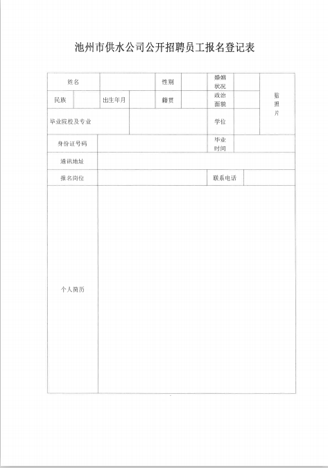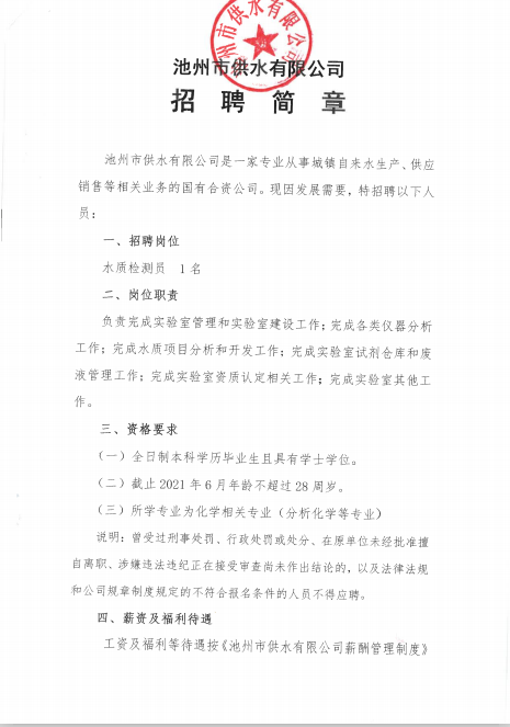 | 池州市供水有限公司招聘簡章 | |
