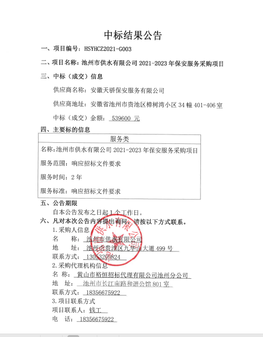 | 中標(biāo)結(jié)果公告 | |