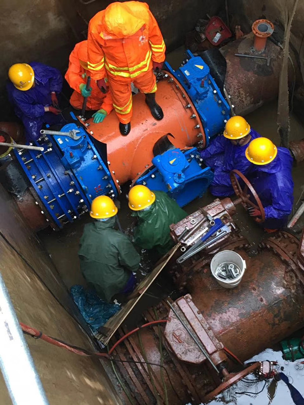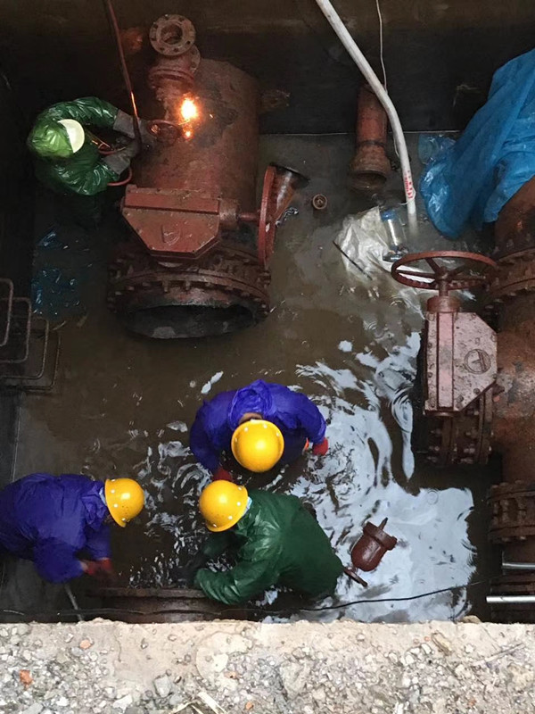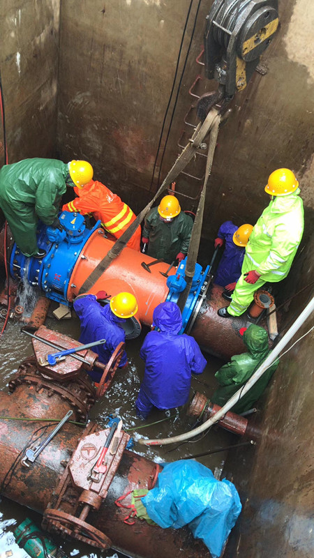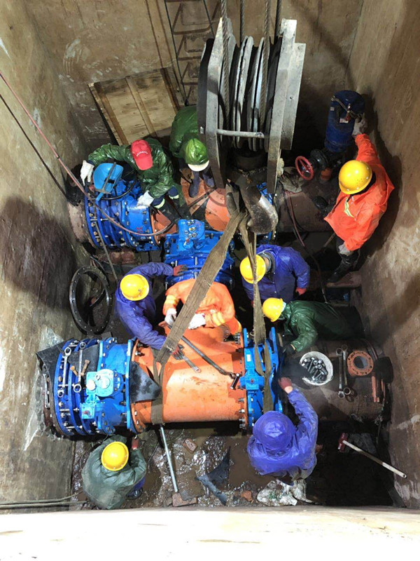 | ——池州供水公司冒雨實(shí)施民生水廠技術(shù)改造   4月9日,池城下了一天的大雨,將8日積蓄的初夏熱辣瞬間洗刷成春冬季的倒春寒。雖然狂風(fēng)大作、大雨滂沱、氣溫驟降,但在池州市供水有限公司民生水廠一期技術(shù)改造施工現(xiàn)場(chǎng),卻依然呈現(xiàn)出一片火熱的繁忙景象——民生水廠沿江路過(guò)河管道甲、乙井閥門(mén)、民生水廠出水主干管道三處工程改造施工工作正如火如荼地冒雨進(jìn)行中。   民生水廠跨秋浦河過(guò)河管道甲、乙井是民生水廠向池州主城區(qū)供水的兩條輸水管網(wǎng)上相互連通、調(diào)節(jié)城區(qū)供水的關(guān)鍵閥門(mén)控制節(jié)點(diǎn)。這兩處控制井閥門(mén)自1991年建成投入使用已達(dá)27年之久,閥門(mén)老化、銹蝕、難以調(diào)控已成為池州城市供水的重大隱患。為杜絕隱患,保障城市供水安全,提升城市供水品質(zhì),池州市供水公司多方研究后決定實(shí)施徹底改造。   “今天是池州供水值得記憶的一天!”。4月9日,池州供水沿江路過(guò)河管道甲、乙井控制閥及民生水廠出水主干管改造三處大工程同時(shí)施工,任務(wù)之艱巨可想而知。據(jù)介紹,民生水廠一期技改工程屬于2017-2019年池州市本級(jí)政府和社會(huì)資本合作項(xiàng)目,同時(shí)也是池州市海綿城市配套建設(shè)項(xiàng)目,工程于2018年4月23日正式施工,現(xiàn)已進(jìn)入調(diào)試運(yùn)行階段。   為推進(jìn)民生水廠一期技改工程順利通水,池州市供水有限公司未雨綢繆、提前多方謀劃了相關(guān)配套改造工程。早在3月底,公司組織民生水廠、生產(chǎn)技術(shù)部、水務(wù)工程公司等專業(yè)技術(shù)人員多次實(shí)地考察、充分調(diào)研,制定了詳細(xì)的施工方案。4月1日,公司召開(kāi)專題會(huì)議,對(duì)本次施工改造方案反復(fù)推演、全面部署,確保方案精準(zhǔn),分工負(fù)責(zé),責(zé)任到人,各項(xiàng)準(zhǔn)備萬(wàn)無(wú)一失。   為將改造施工期間對(duì)居民生活可能造成的影響降到最低,公司于專題會(huì)議當(dāng)天主及時(shí)擬定和發(fā)布了全城降壓供水通知。同時(shí)通過(guò)手機(jī)短信、微信公眾號(hào)等渠道發(fā)送通知,并安排客服人員走進(jìn)小區(qū),與物業(yè)對(duì)接,并在小區(qū)公告欄張貼降壓供水通知。臨近9日,公司更是通過(guò)電視臺(tái)滾動(dòng)播送、微信朋友圈、個(gè)人小區(qū)微信群等方式發(fā)布通知,以盡可能讓更多居民知悉情況并提前做好蓄水工作。